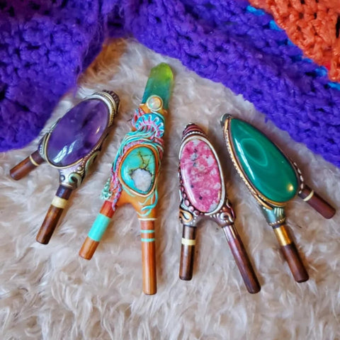 I have purchased several things from Angela, including handmade kuripes, tepis, jewelry, and special hape blends. I love the detail that she puts into her handmaid pieces! She truly puts her spirit and the spirit of the intention into each one of the pieces that she makes. I couldn't imagine getting my shamanic medicine from anyone else.